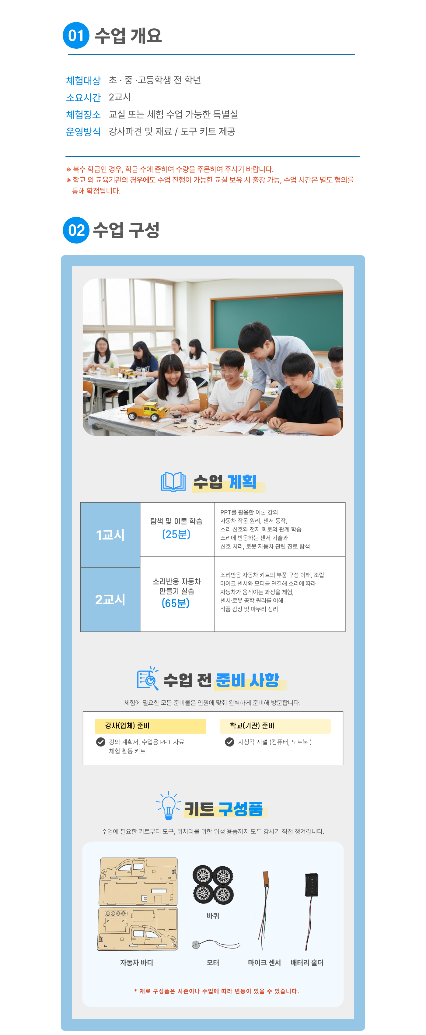유의사항 한 과목당 최소 20명 이상 (한 반 인원이 20명 미만일 경우 추가 체험비 발생, 20명 이상일 경우 변동 없음)