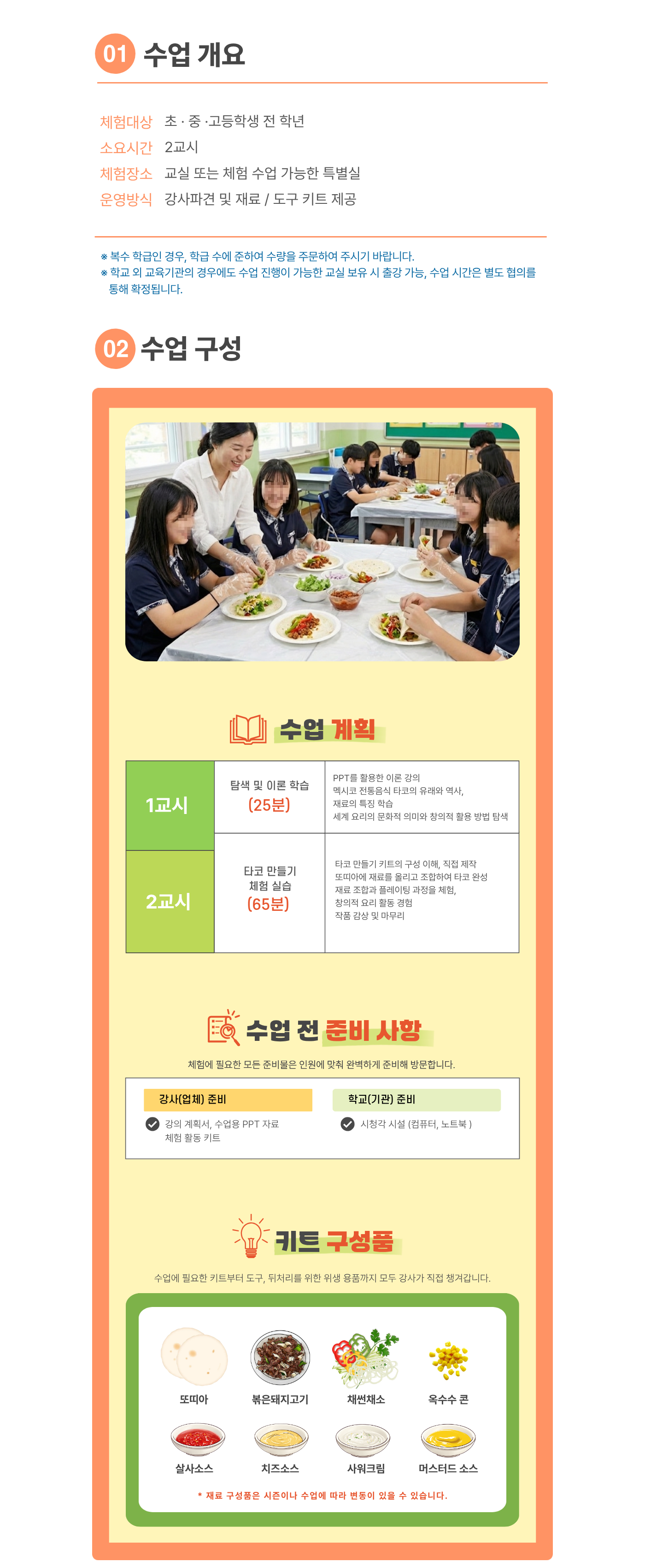 체험시간 2개교시 기준, 유아[60분] / 초등[80분] / 중,고등 [90분]