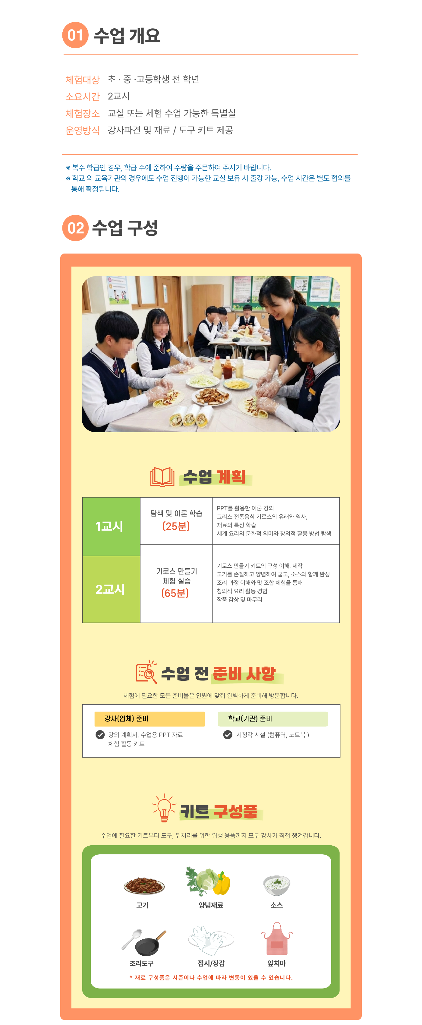 유의사항 한 과목당 최소 20명 이상 (한 반 인원이 20명 미만일 경우 추가 체험비 발생, 20명 이상일 경우 변동 없음)