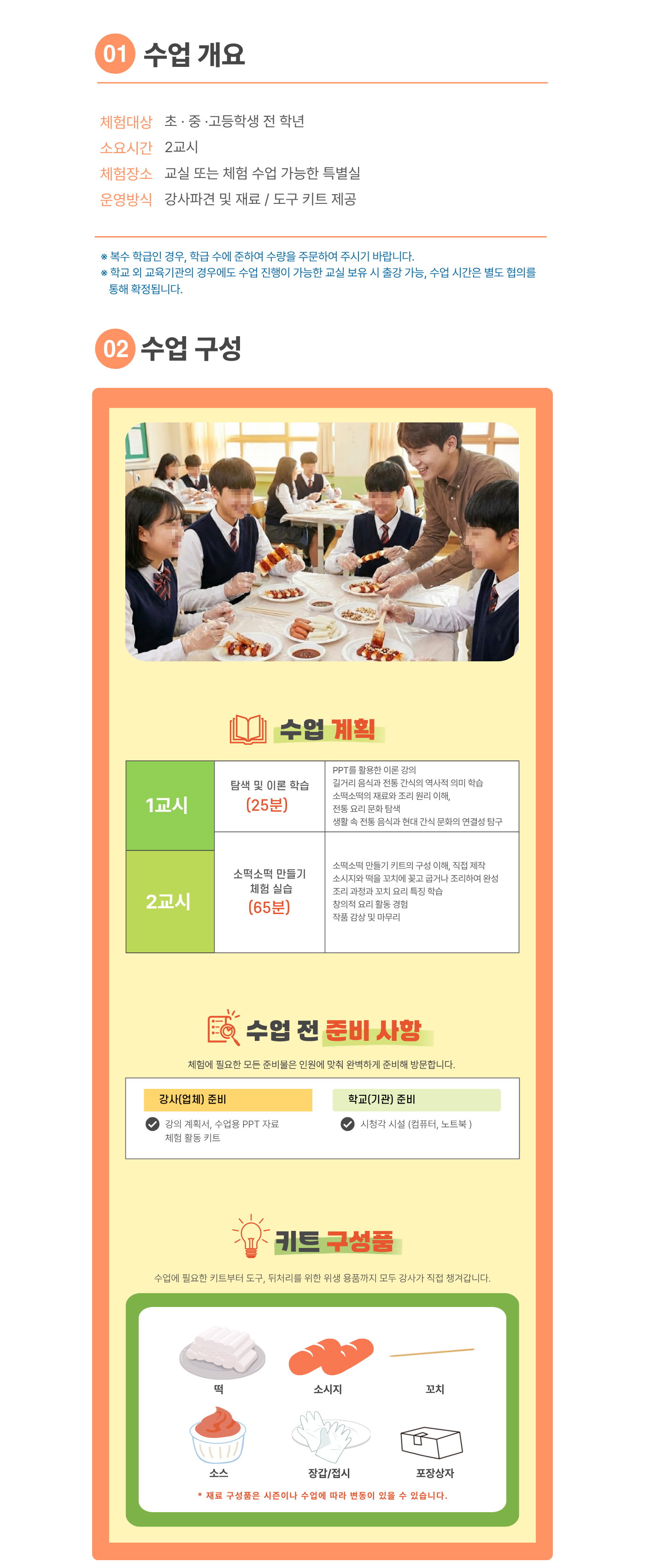 유의사항 한 과목당 최소 20명 이상 (한 반 인원이 20명 미만일 경우 추가 체험비 발생, 20명 이상일 경우 변동 없음)