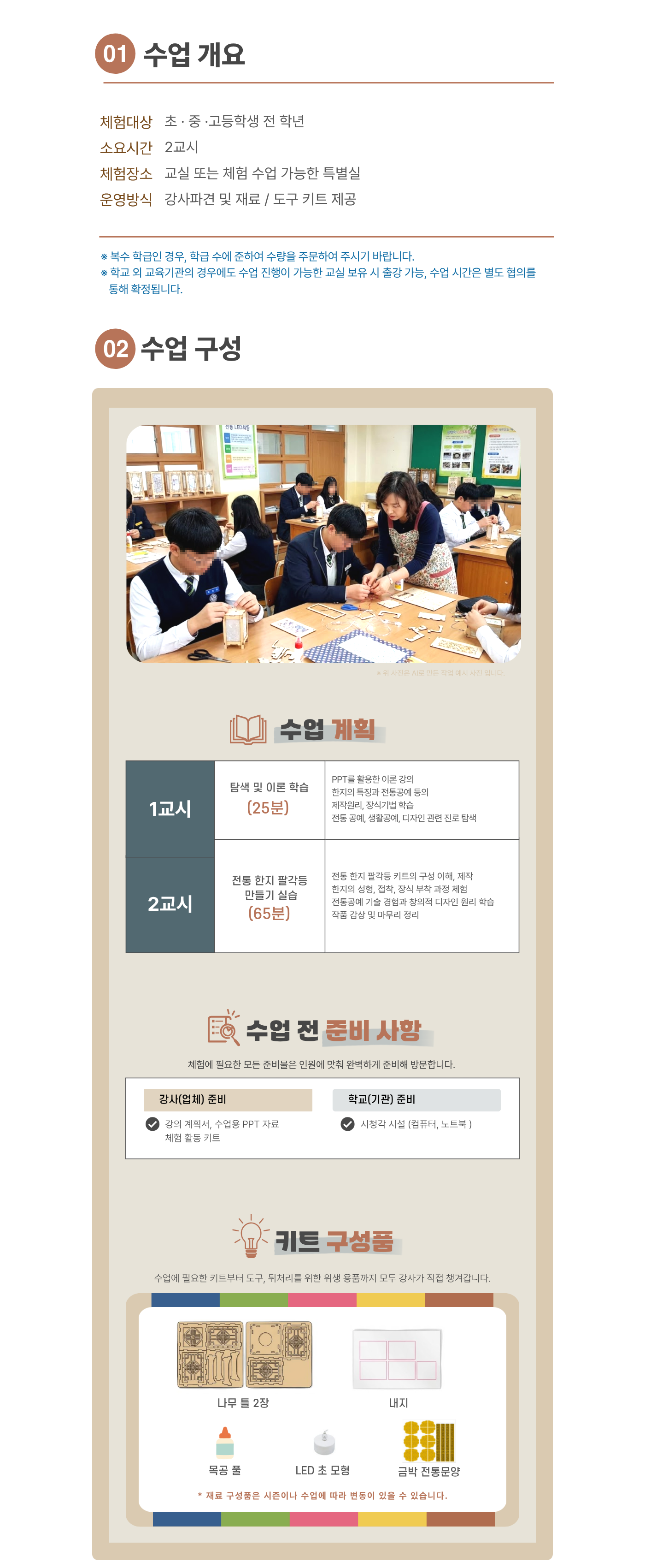 유의사항 한 과목당 최소 20명 이상 (한 반 인원이 20명 미만일 경우 추가 체험비 발생, 20명 이상일 경우 변동 없음)