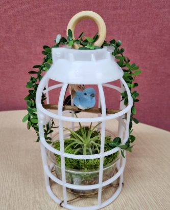 새장 모양 틀을 이용해 테라리움을 만들어 다육이 심기