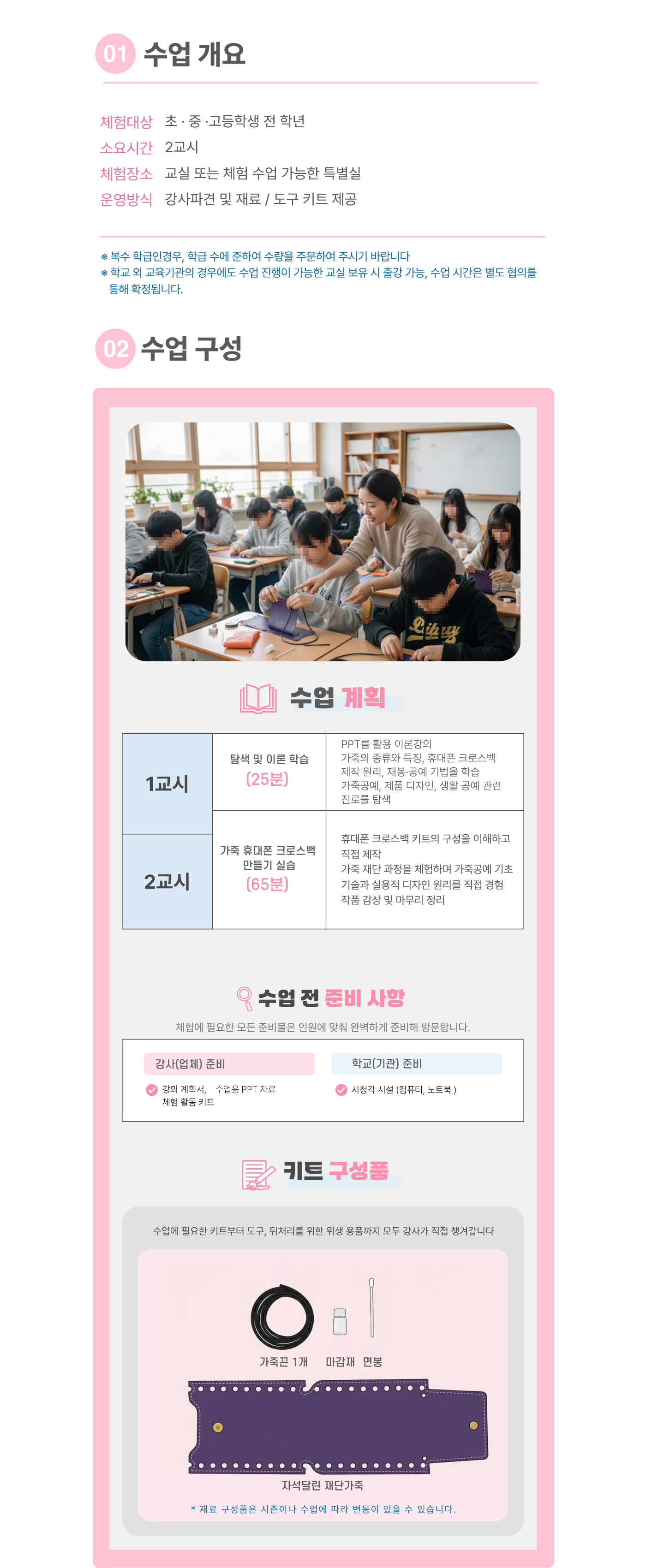 | 수업주제 | 가죽 휴대폰 크로스백 만들기 |