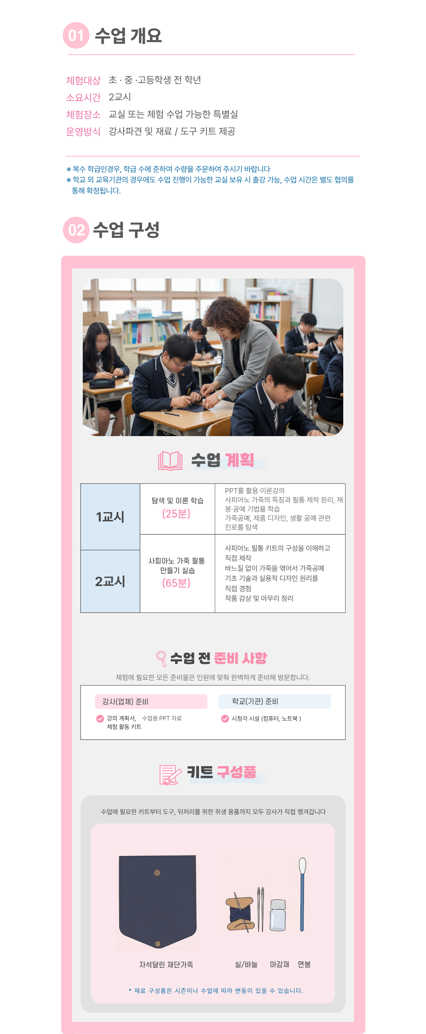 | 수업목표 | 가죽공예를 알아보고 가죽 필통 만들기 |