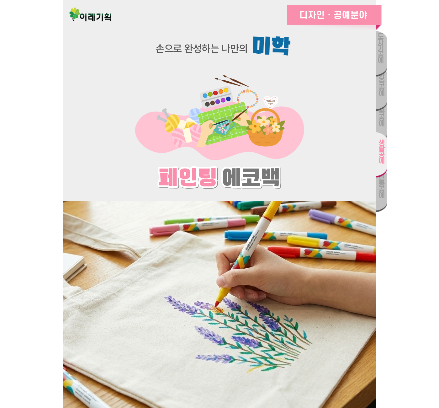 | 수업목표 | 생활공예가에 대해 알아보고 페인팅 에코백 만들기 |