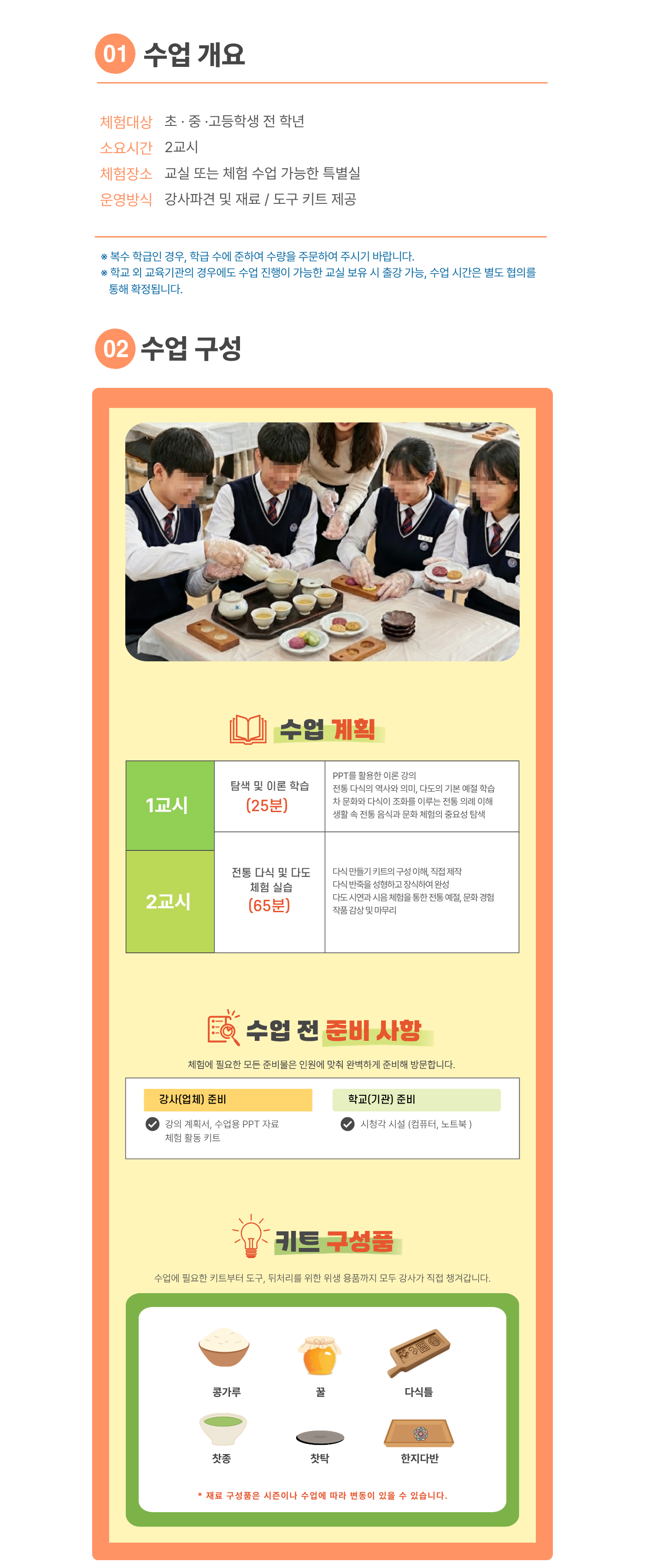 수업주제 전통 다식/다도 체험 (키트 지급)