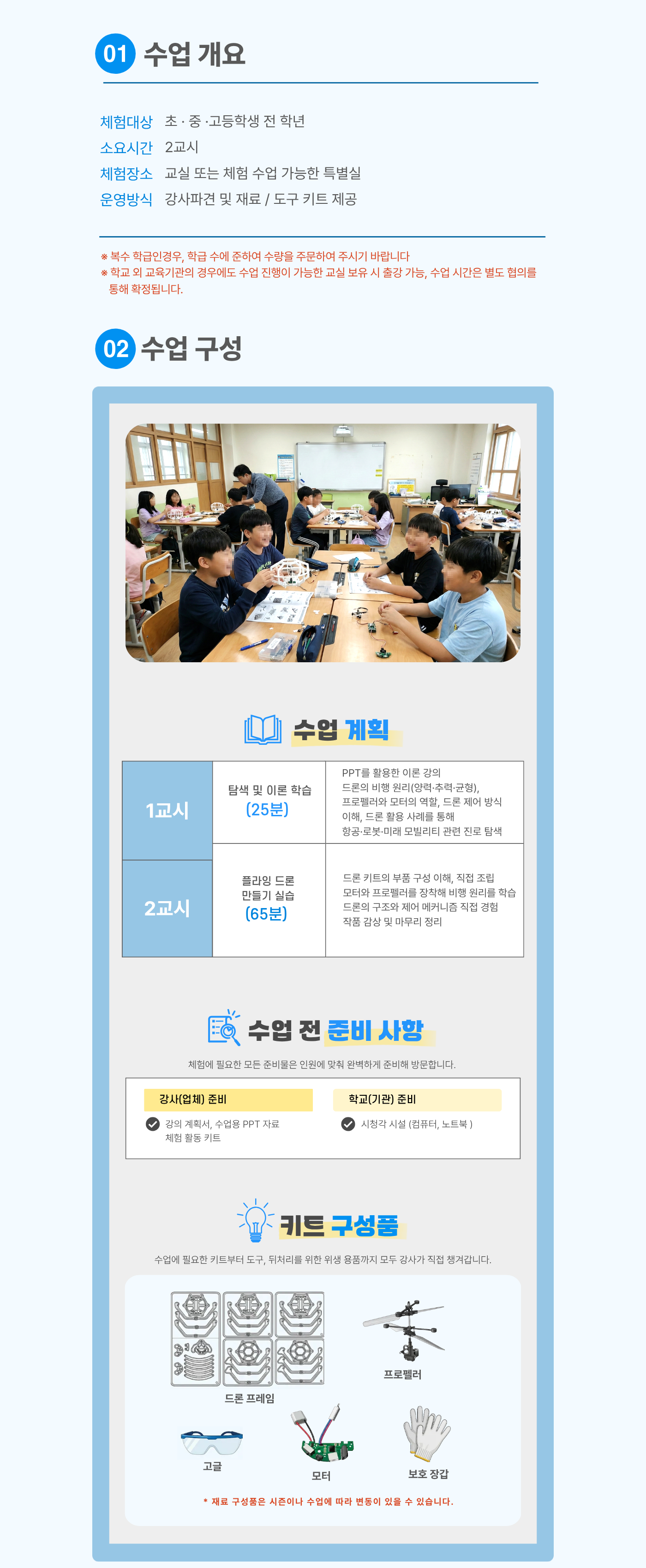 | 수업목표 | 드론에 대한 이해 및 만들기체험 |