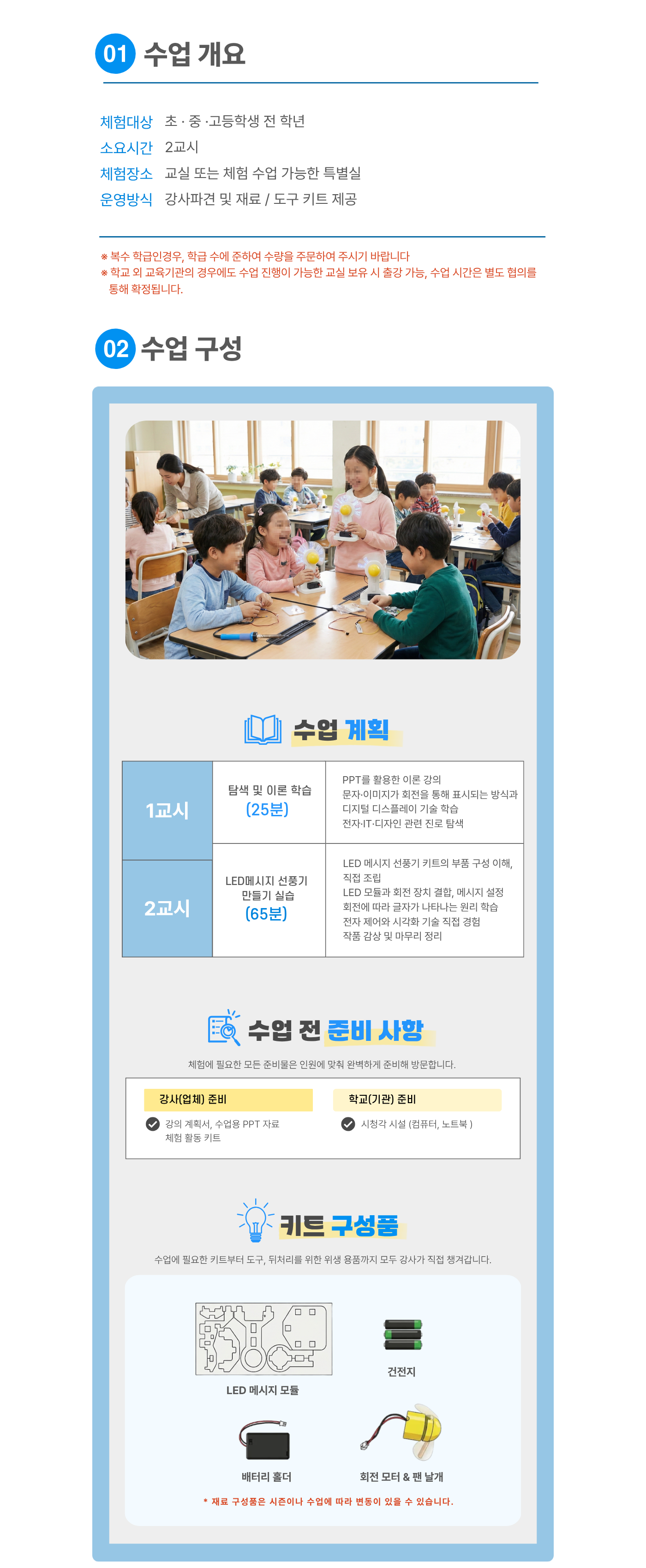 | 강사배정 | 방문체험학습 전문강사 1인당 1학급 강의 (20-30명) |