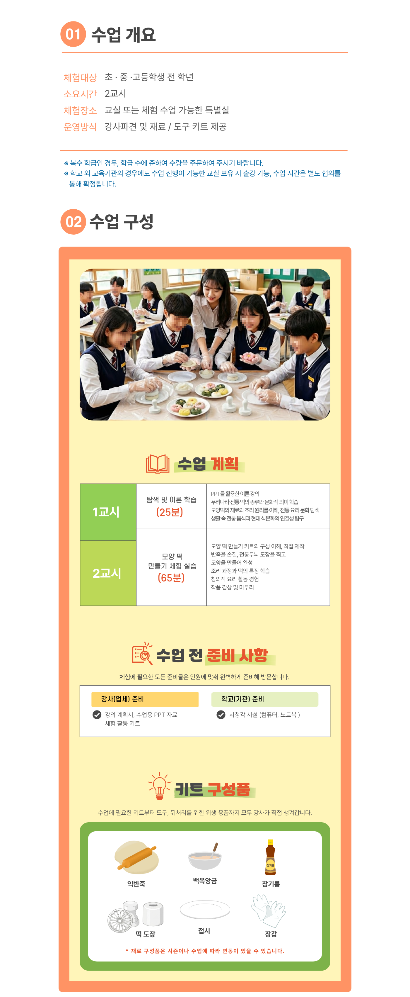 체험시간 2개교시 기준, 유아[60분] / 초등[80분] / 중,고등 [90분]
