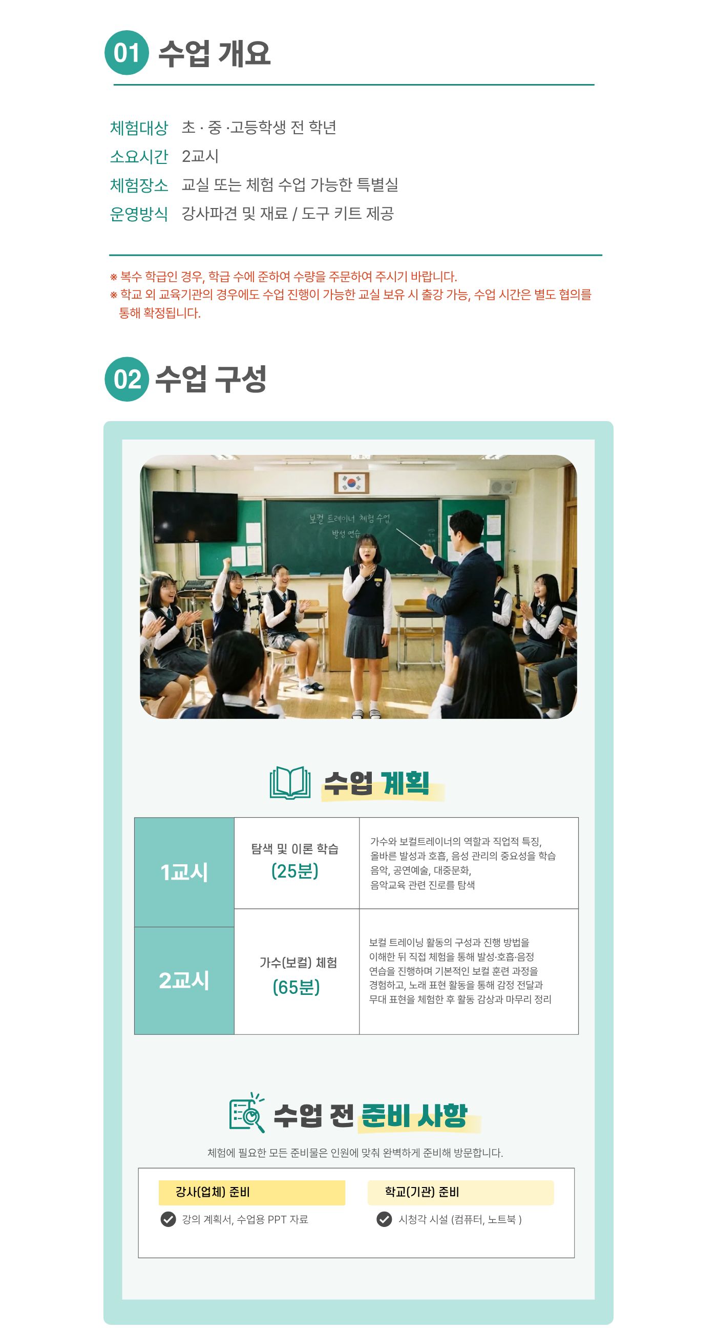 | 수업목표 | 올바른 발성법을 배워 노래를 불러보자! |