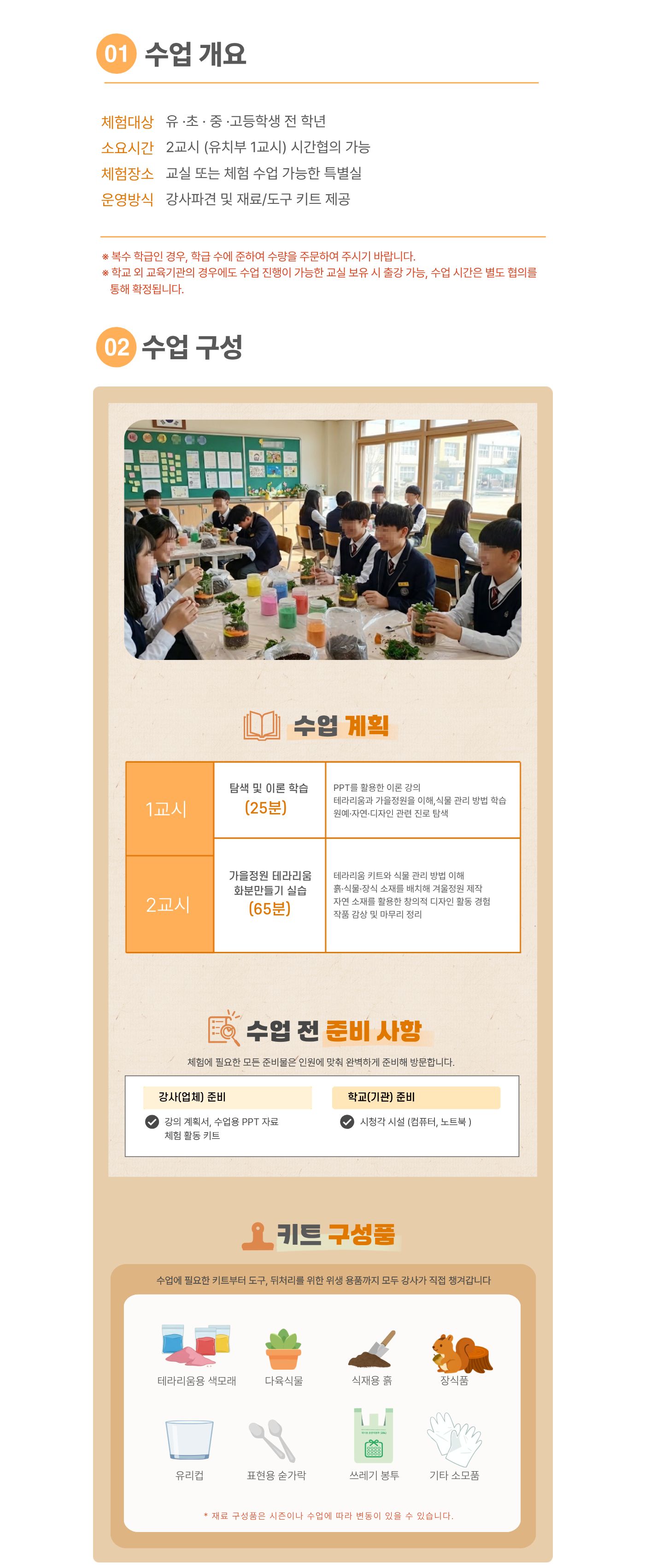 한 과목당 최소 20명 이상 (한 반 인원이 20명 미만일 경우 추가 체험비 발생, 20명 이상일 경우 변동 없음)