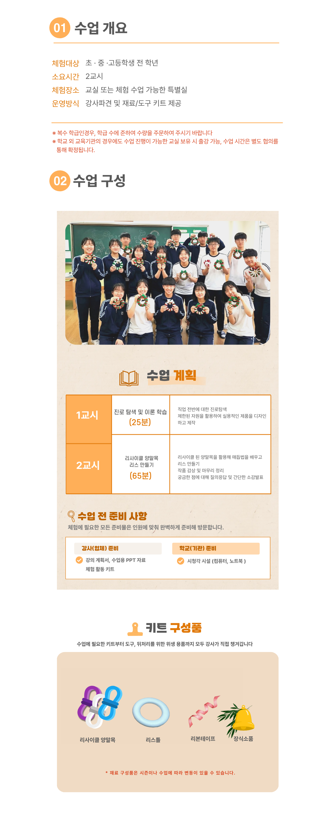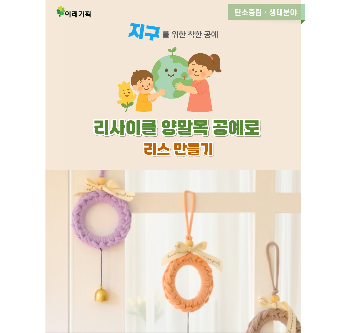 | 수업주제 | 양말목공예로 리스 만들기 (리스사이즈는 상황에 따라 달라 질 수 있음) |