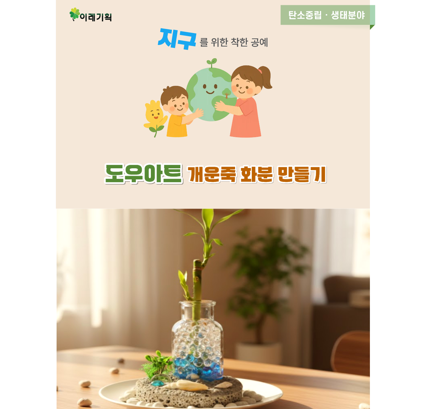 | 수업목표 | 친환경 도우를 이용해 화병을 만들어 개운죽 심기 |