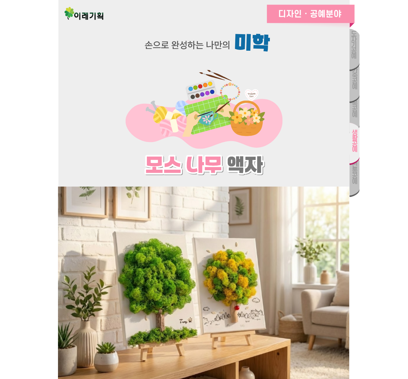 생활 공예에 대해 알아보고, 캔버스 액자에 모스를 이용하여 액자 만들기