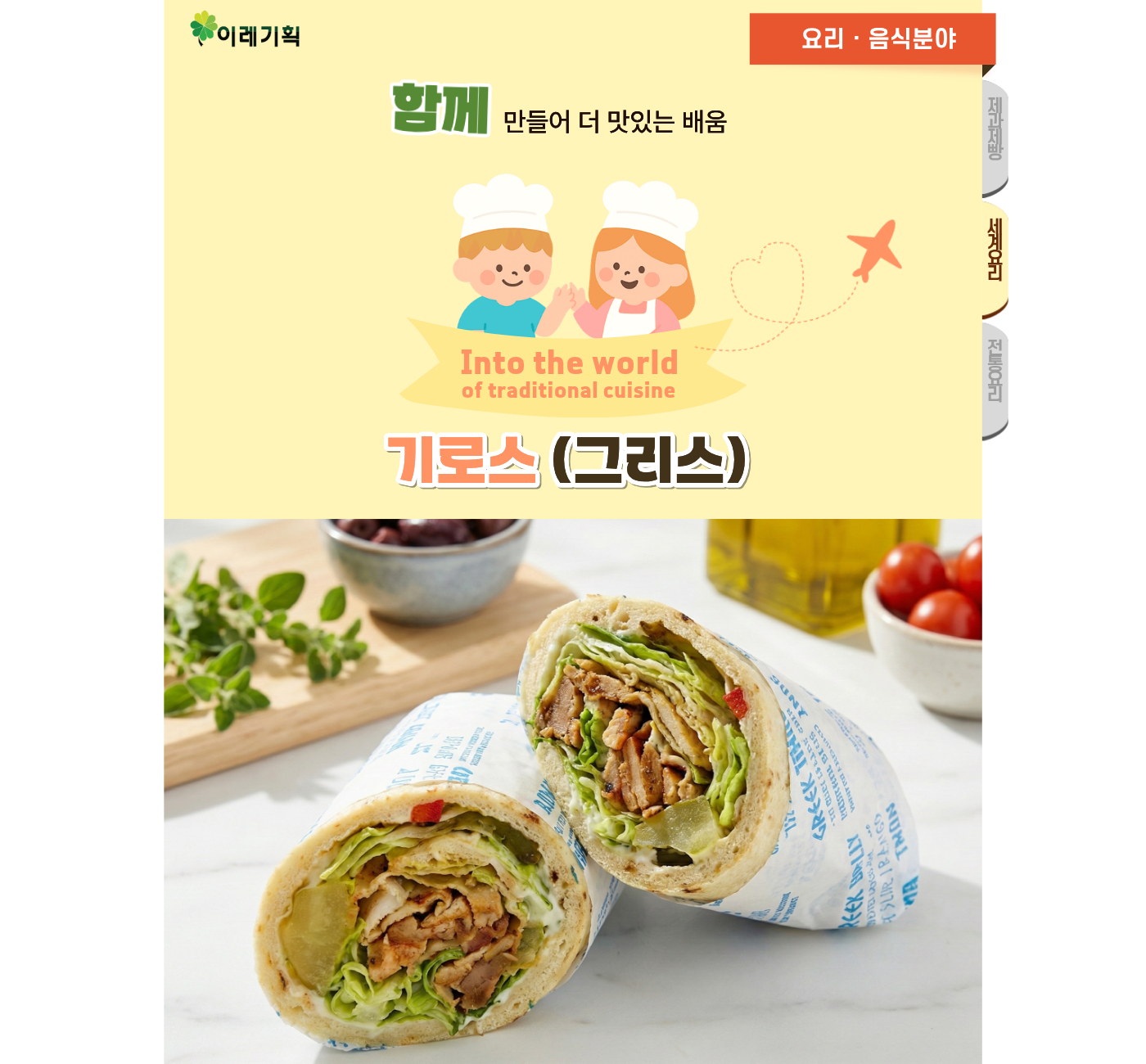 | 수업목표 | 그리스 전통음식인 기로스에 대해 알아보고, 기로스 만들기 |