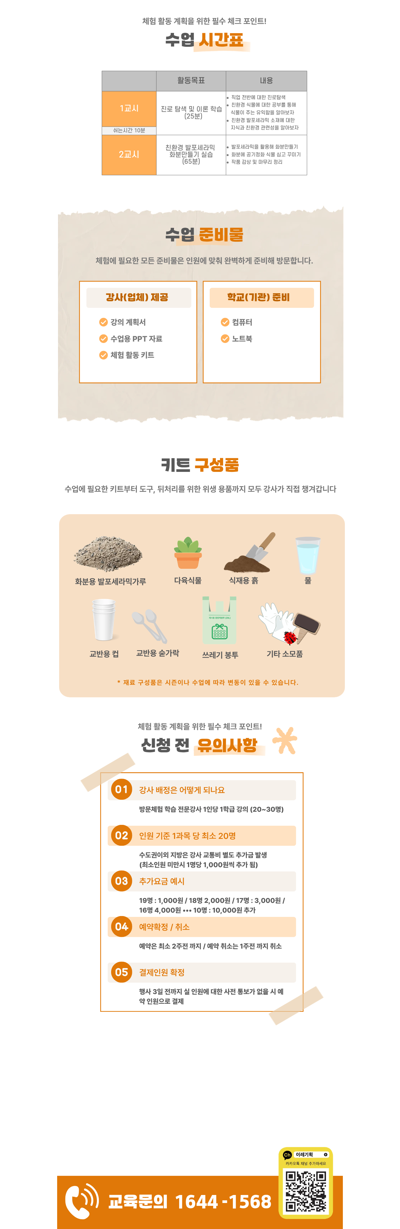1과목당 최소 20명 이상 (1반 인원이 20명 미만일 경우 추가 체험비 발생, 20명 이상일 시 변동없음)