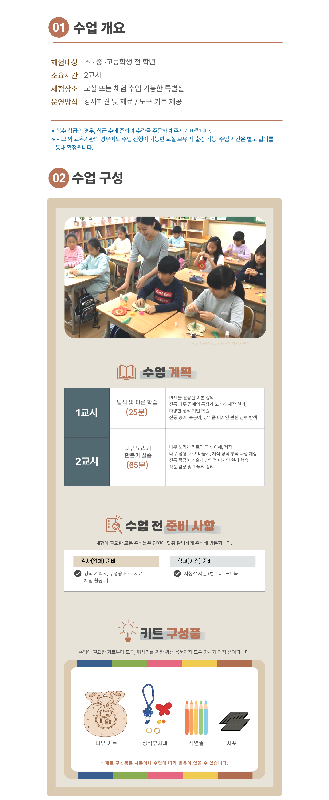 | 유의사항 | 한 과목당 최소 20명 이상 (한 반 인원이 20명 미만일 경우 추가 체험비 발생, 20명 이상일 경우 변동 없음) |