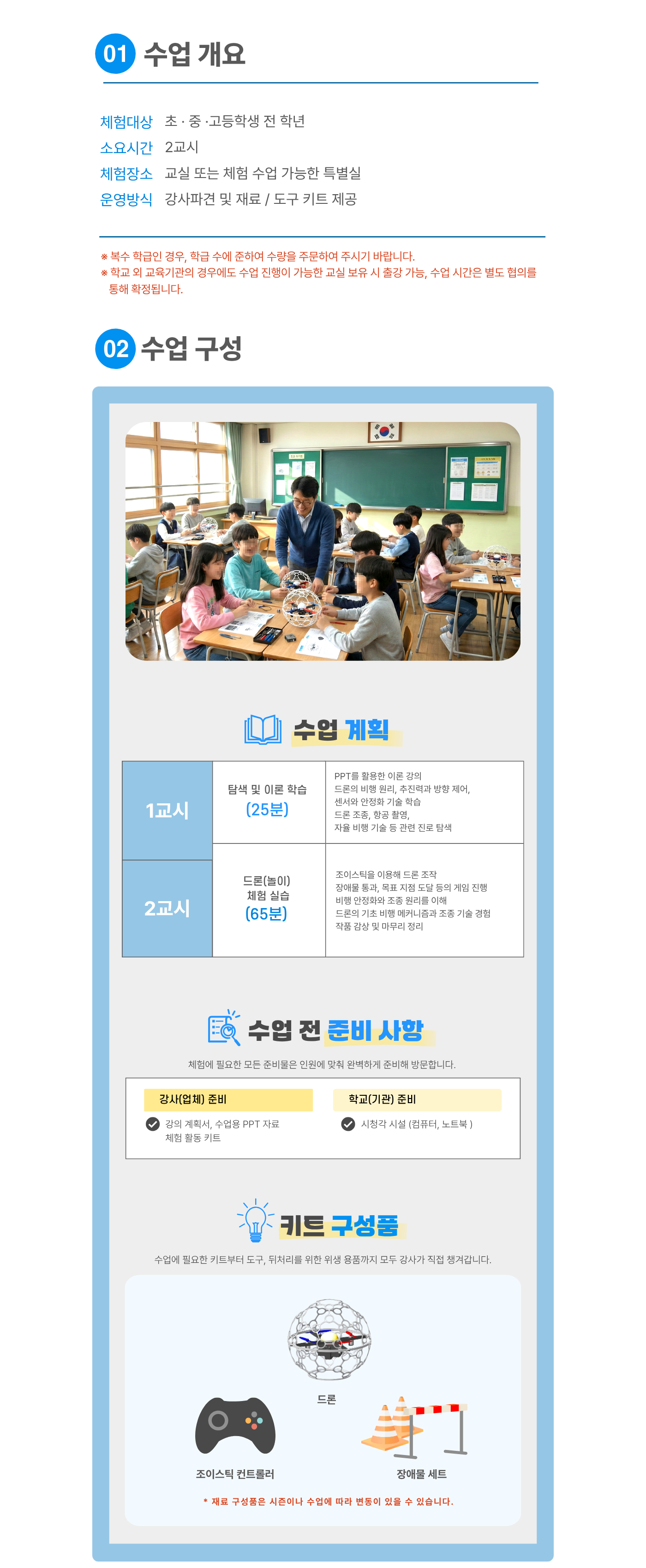 | 유의사항 | 한 과목당 최소 20명 이상 (한 반 인원이 20명 미만일 경우 추가 체험비 발생, 20명 이상일 경우 변동 없음) |