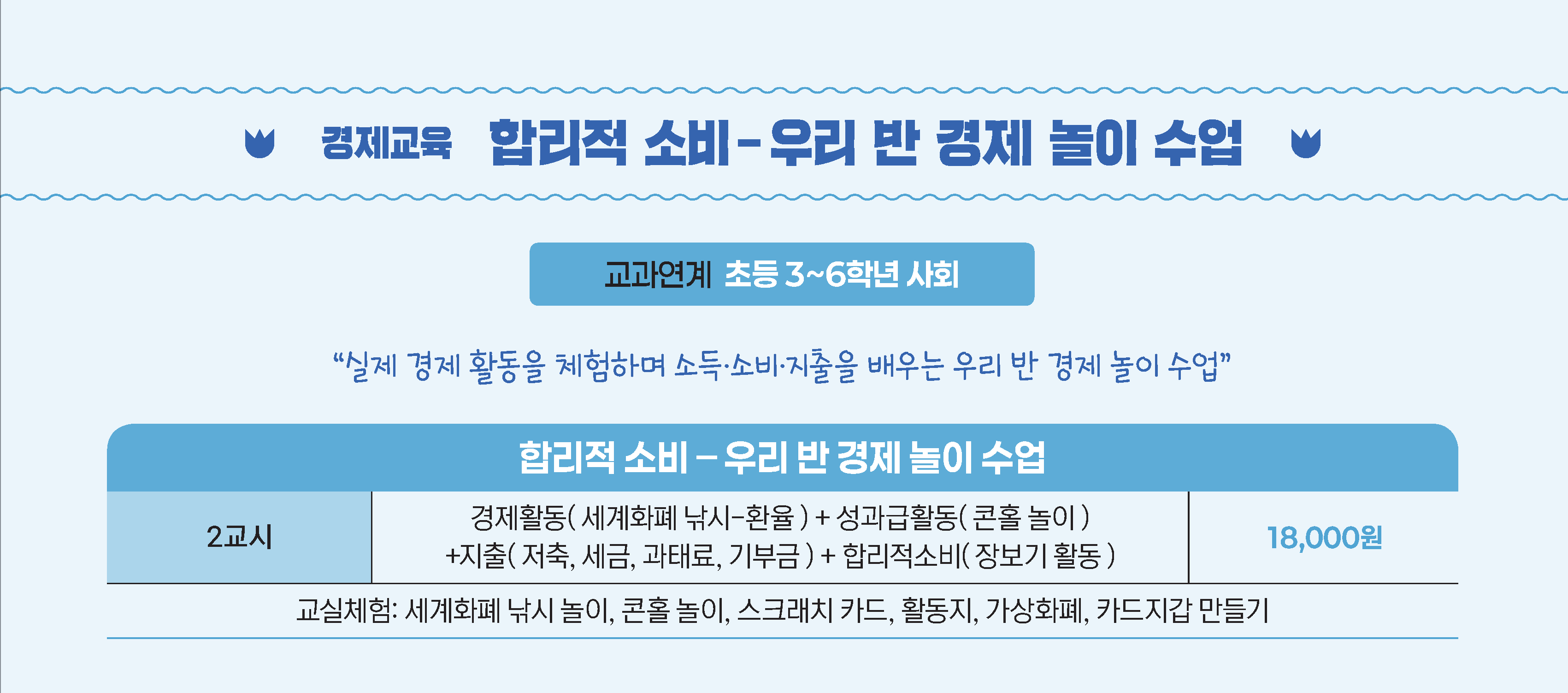 | 수업주제 | 실제 경제 활동을 체험하며, 소득·소비·지출을 배운다. |