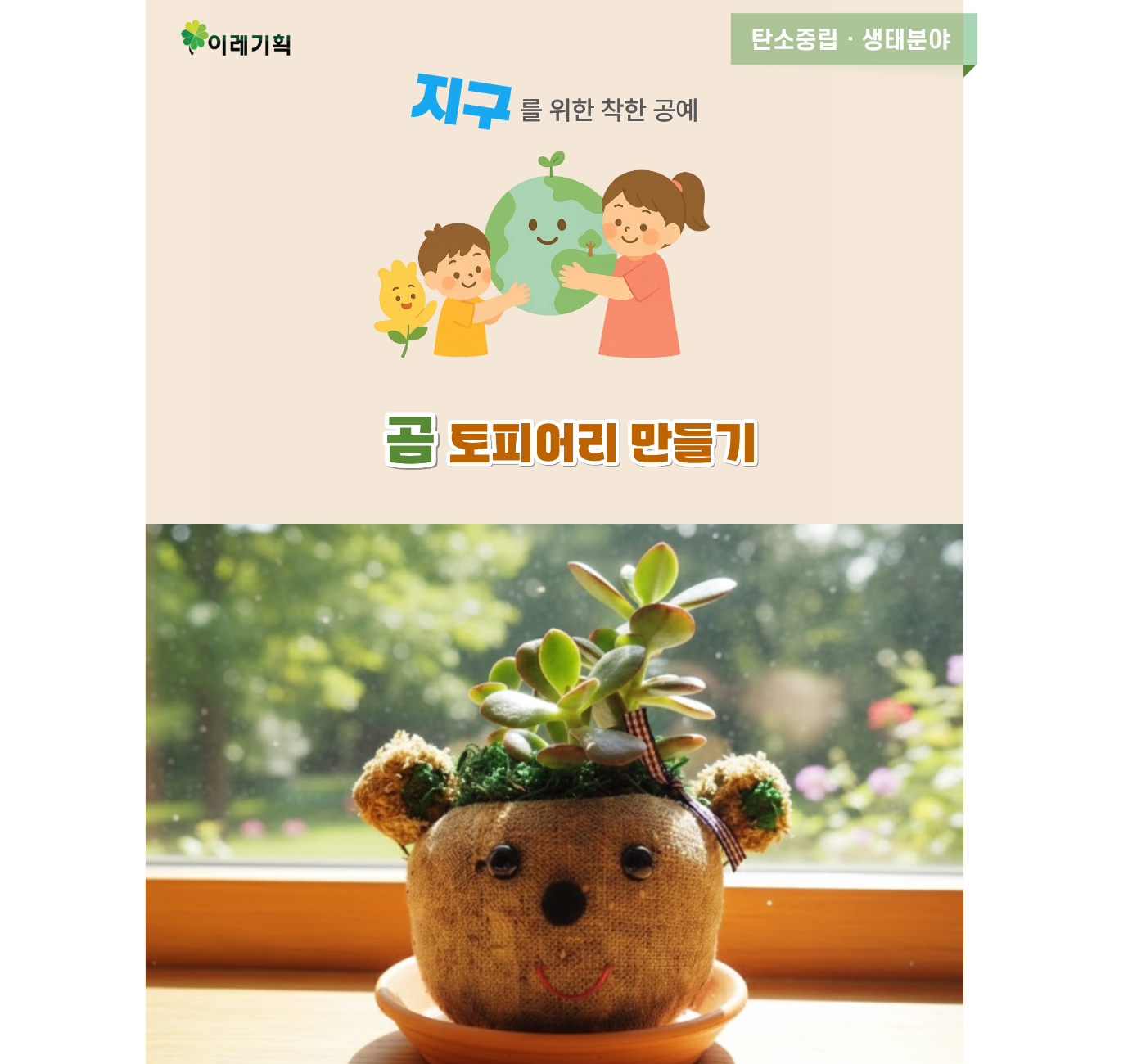 | 수업목표 | 친환경 모스를 이용하여 곰토피어리 만들기 |