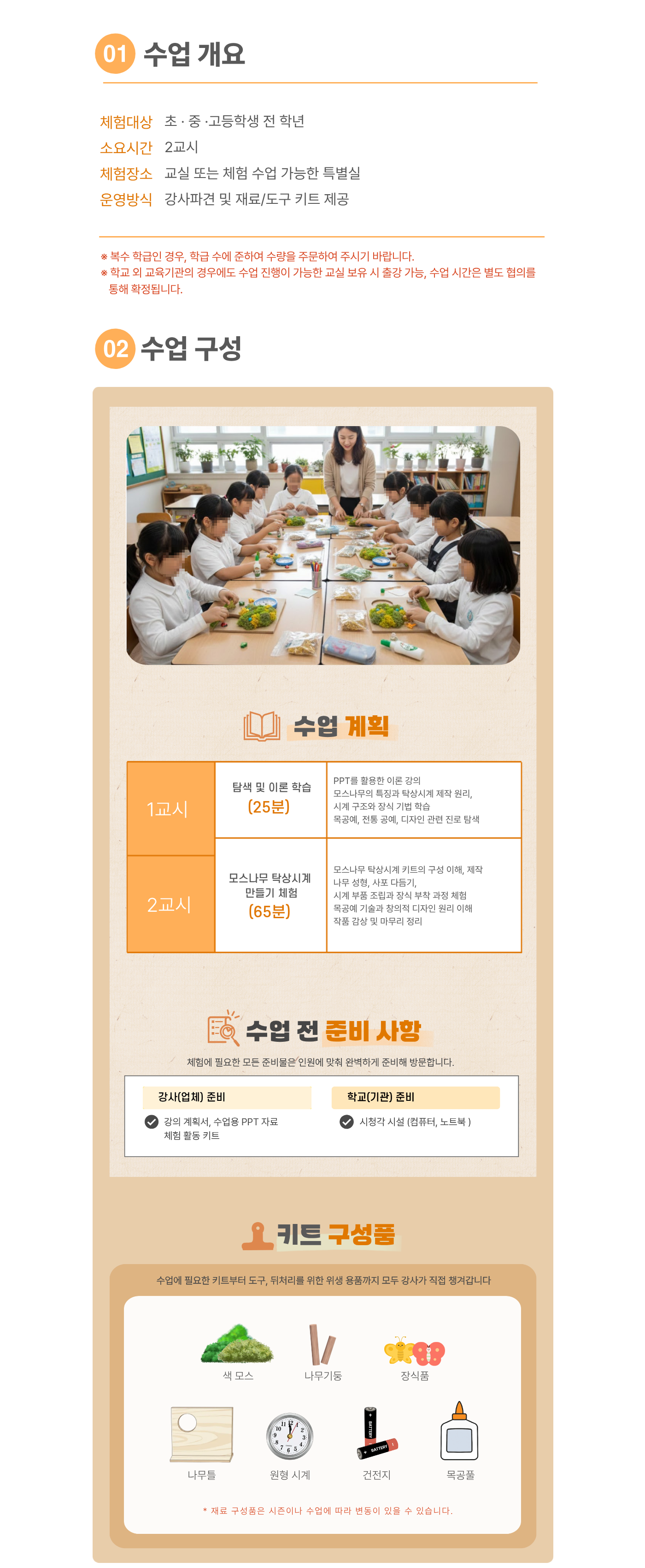 | 수업목표 | 친환경 모스를 이용하여 탁상시계 만들기 |