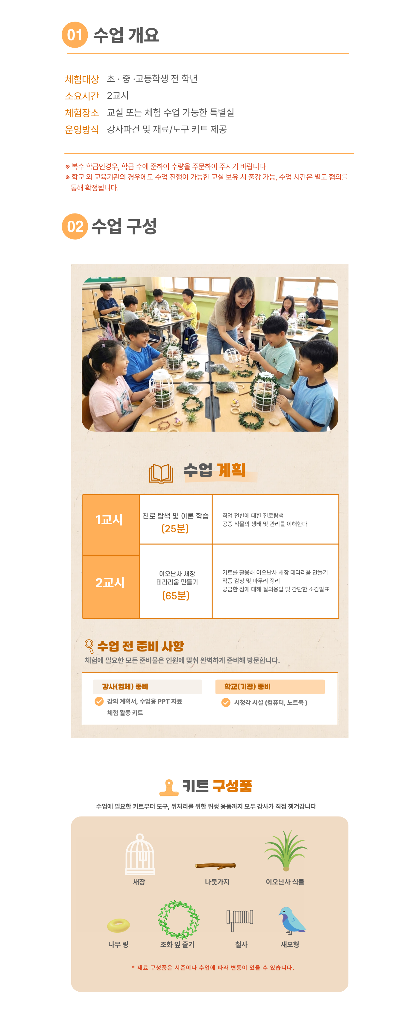 | 인원기준 | 1과목당 최소 21명 이상 (1반 인원이 21명 미만일 경우 추가 체험비 발생, 21명 이상일 시 변동없음) |