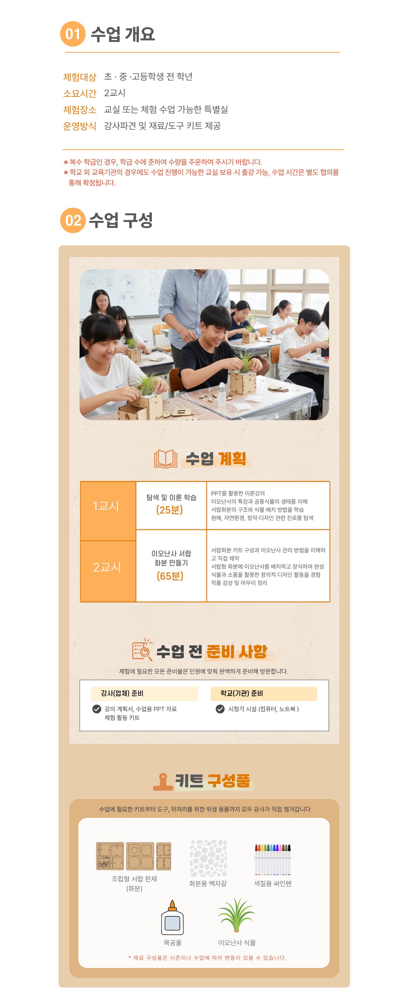 유의사항 한 과목당 최소 20명 이상 (한 반 인원이 20명 미만일 경우 추가 체험비 발생, 20명 이상일 경우 변동 없음)