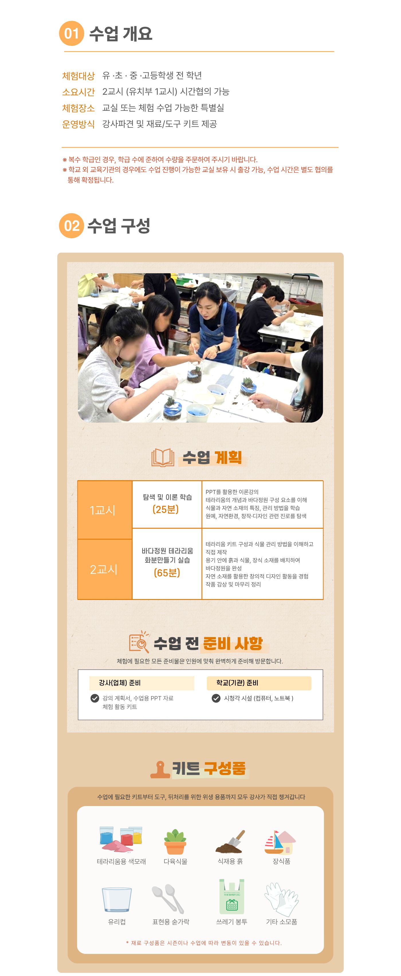| 수업목표 | 테라리움 생태 원리를 이해하고, 테라리움 만들기 |