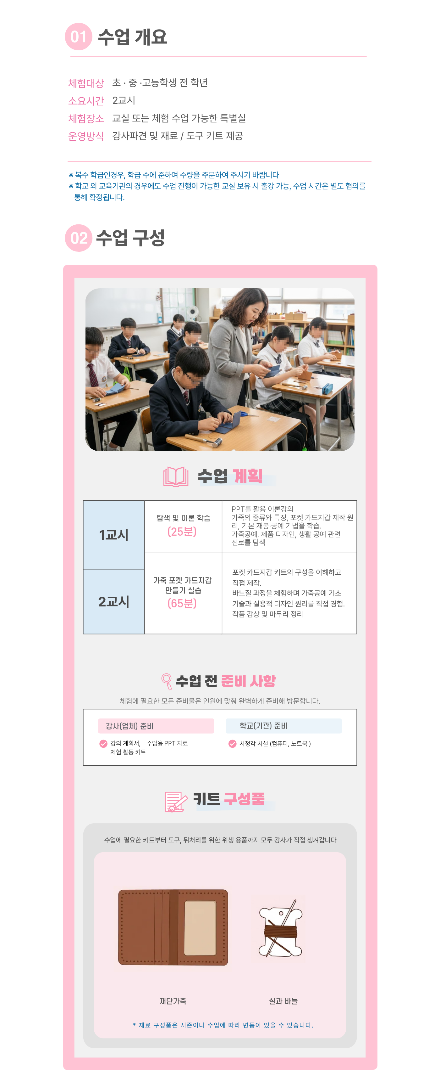 | 수업주제 | 가죽 카드지갑 만들기 |