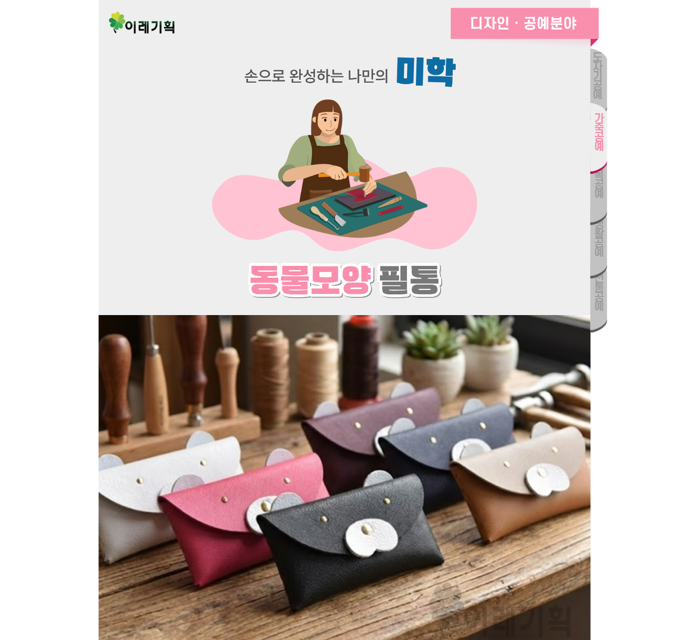 | 수업목표 | 가죽공예를 알아보고, 가죽 필통 만들기 |