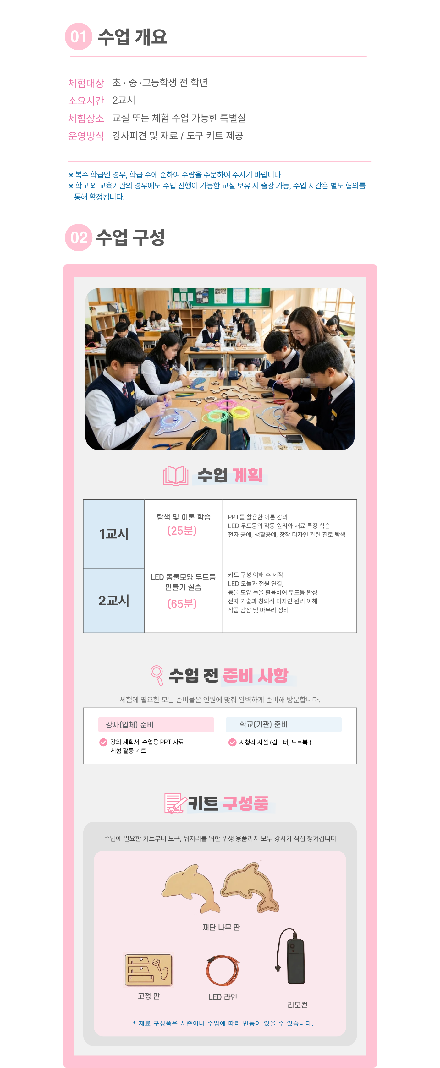 한 과목당 최소 20명 이상 (한 반 인원이 20명 미만일 경우 추가 체험비 발생, 20명 이상일 경우 변동 없음)