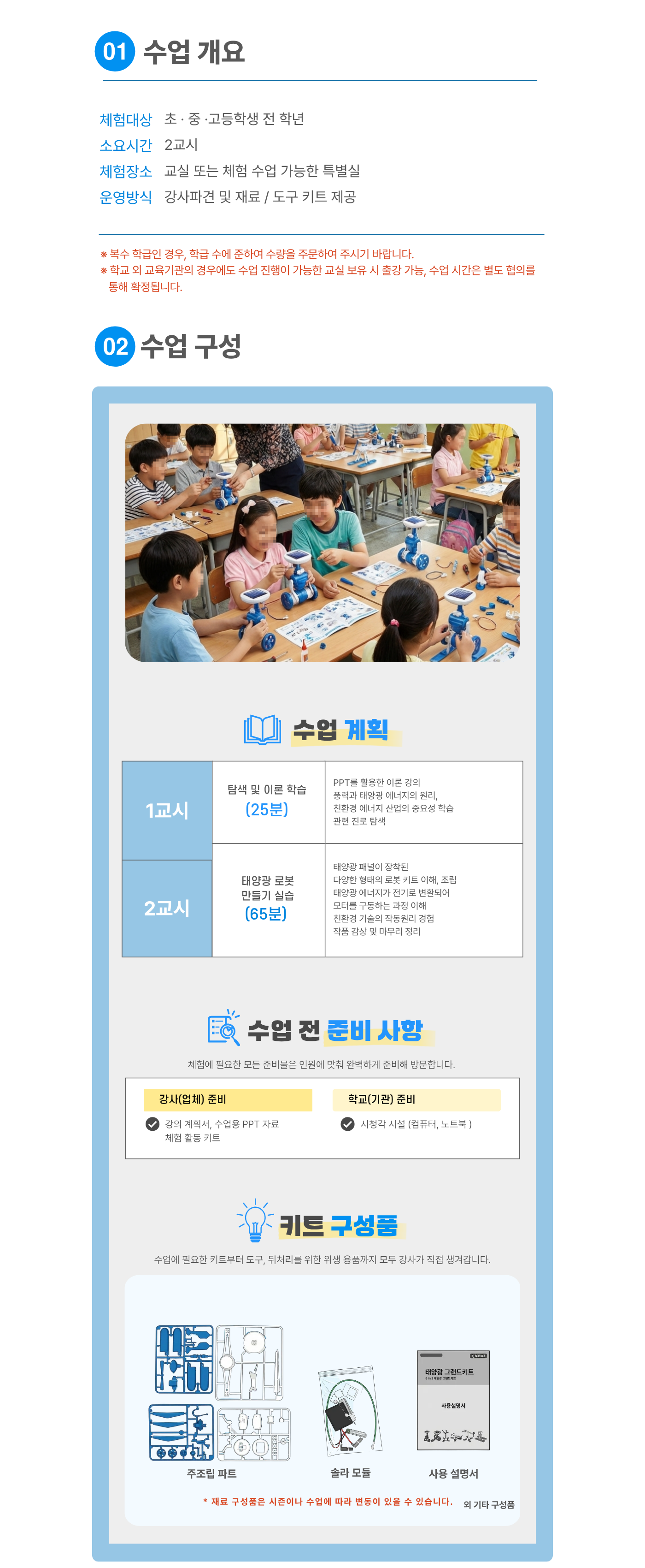 | 유의사항 | 한 과목당 최소 20명 이상 (한 반 인원이 20명 미만일 경우 추가 체험비 발생, 20명 이상일 경우 변동 없음) |