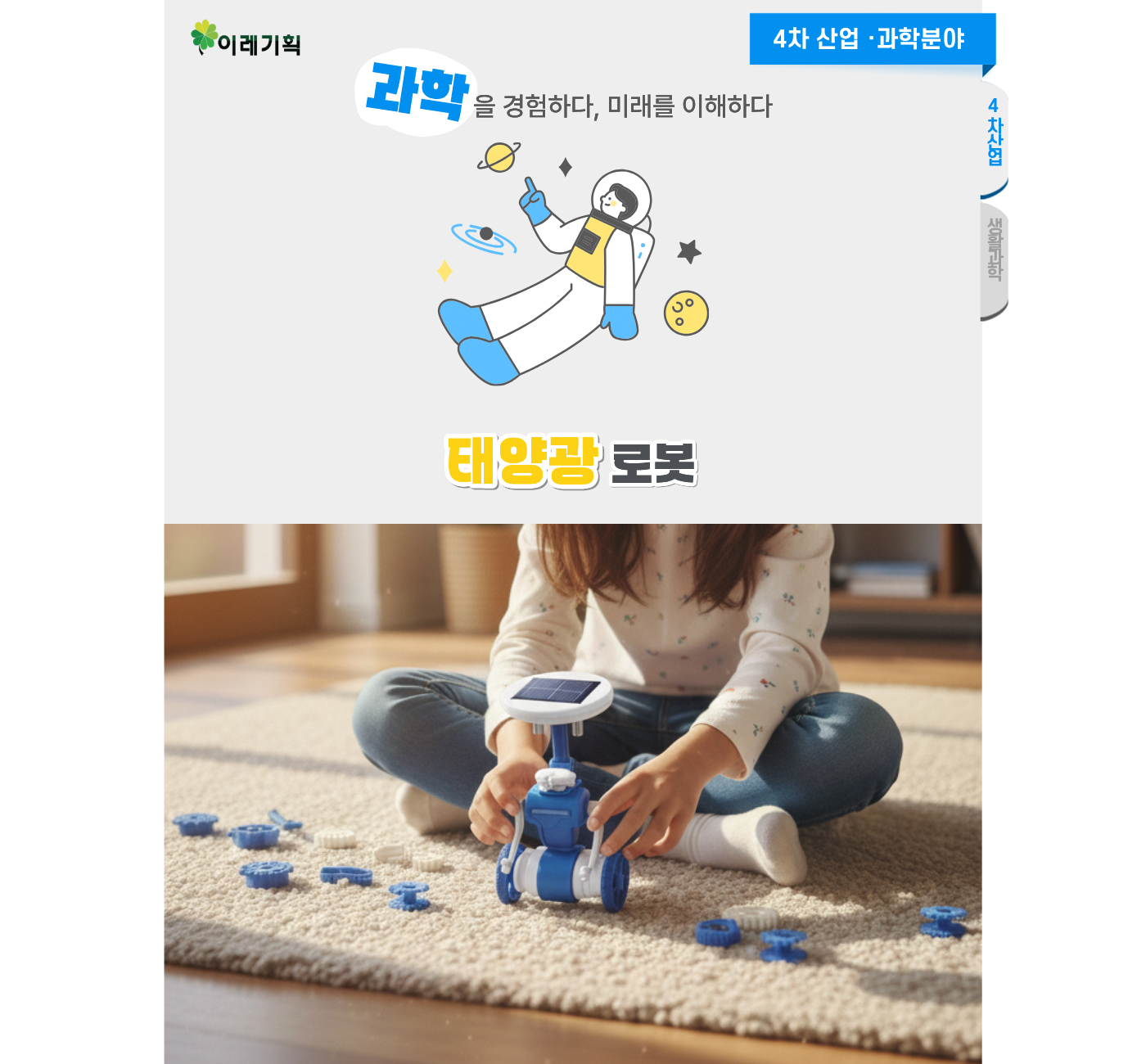 | 수업목표 | 로봇공학에 대해 이해하고, 태양광 로봇 만들기 |
