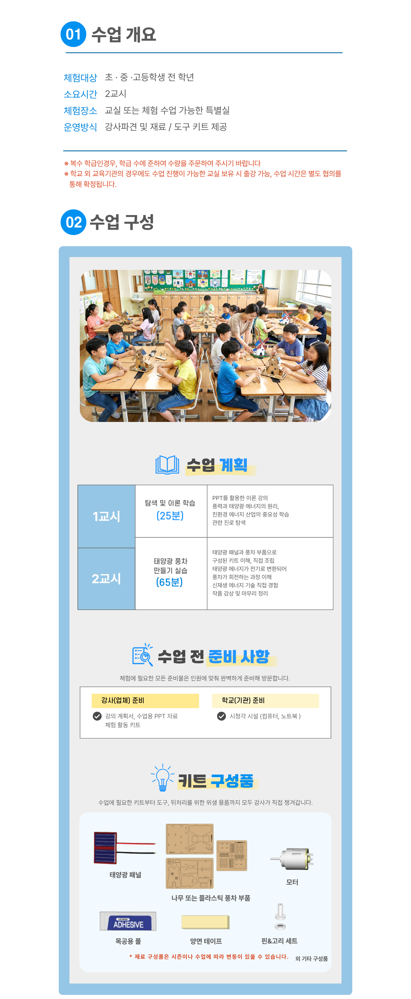 | 유의사항 | 한 과목당 최소 20명 이상 (한 반 인원이 20명 미만일 경우 추가 체험비 발생, 20명 이상일 경우 변동 없음) |