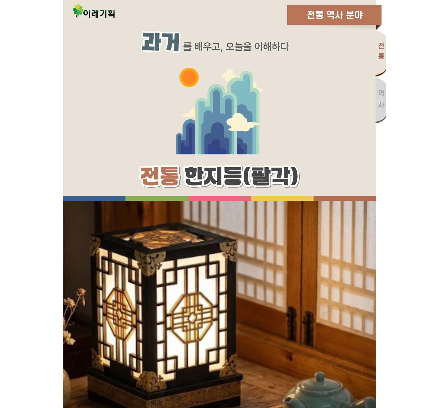 | 수업목표 | 전통 한지등[팔각]의 유래와 의미에 대해 알아보고, 나만의 전통 한지등[팔각] 만들기 |